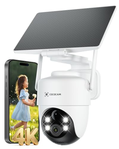 COCOCAM 4K 8MP Security Camera Outdoor Wireless WiFi with 5W Adjustable Solar Panel, 10000mAh Battery, AI Recognition, PIR Human Detection, 355° P 90°T, Two-Way Audio, 2.4GHz WiFi, Cloud, IP66