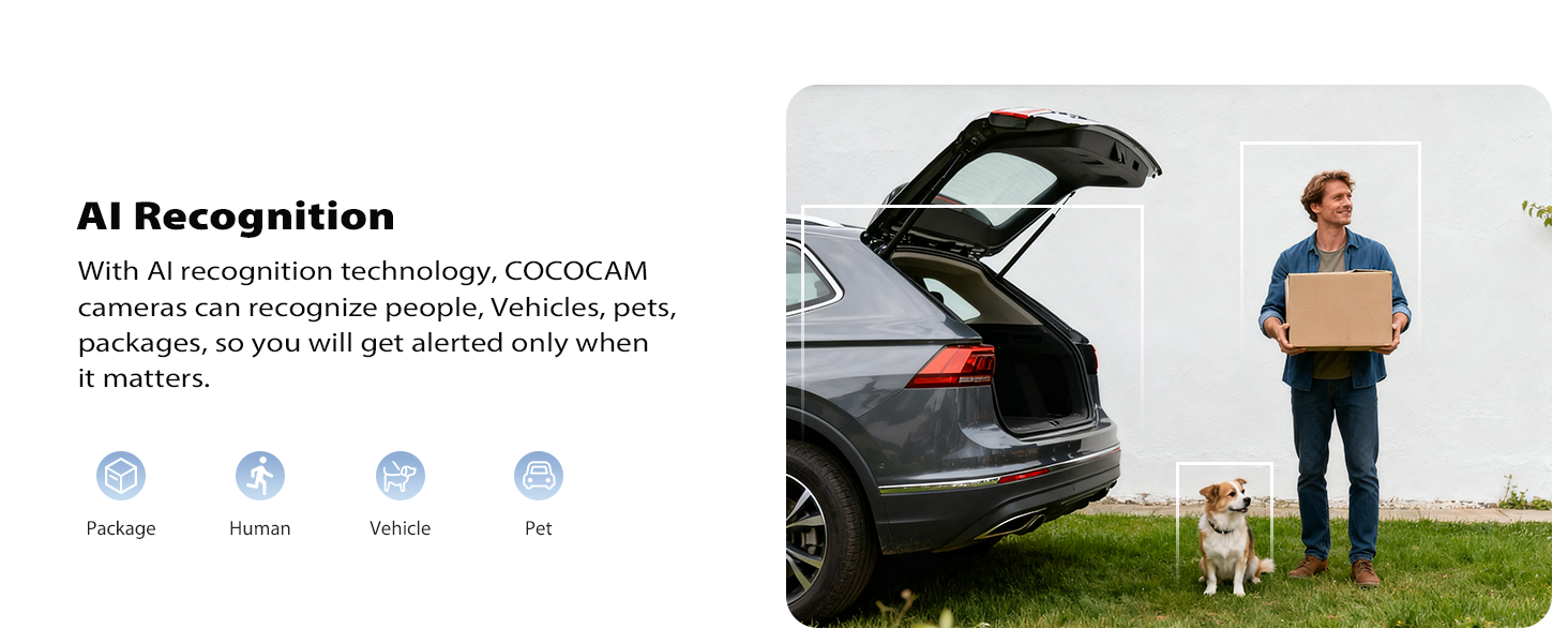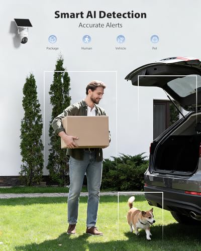 - AI-Powered Smart Detection & Voice Control: The wireless outdoor security camera features advanced AI detection for humans, vehicles, pets, and packages. Works seamlessly with Alexa and Google Assistant for voice control and real-time alerts, enhancing your smart home experience.