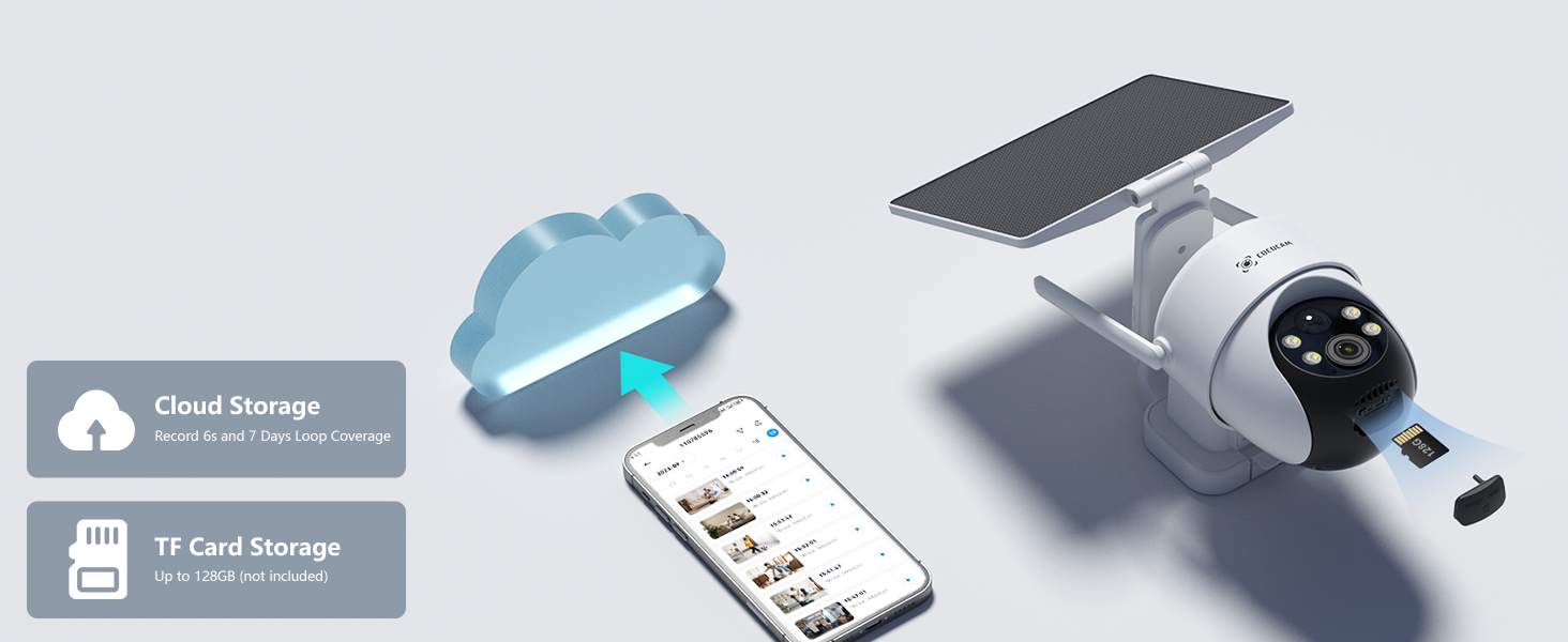 | Storage | TF card (up to 128GB, sold separately), Cloud storage(Record 6s and 7 Days Loop Coverage) |