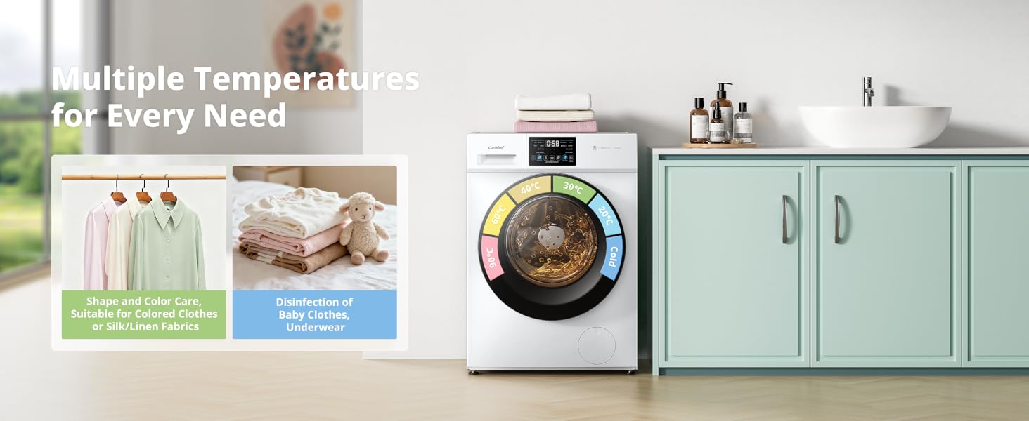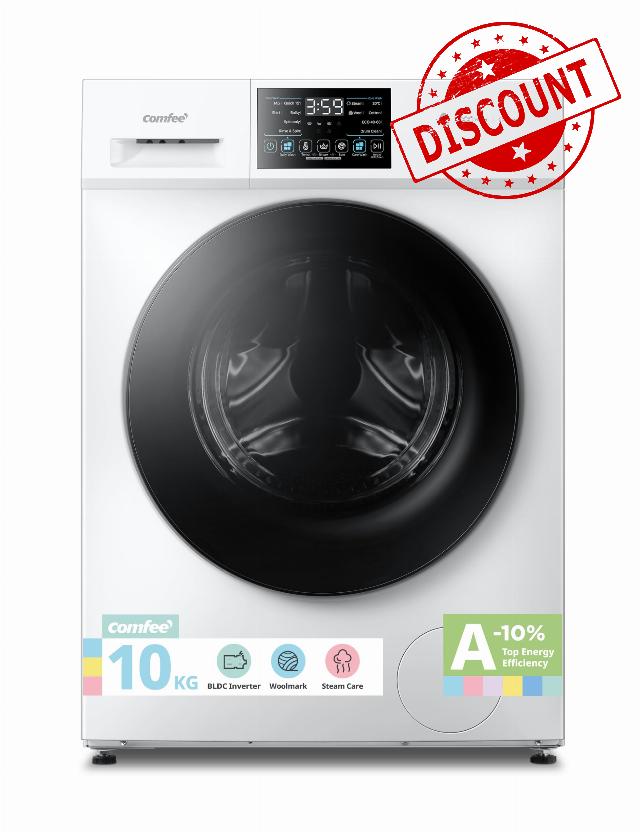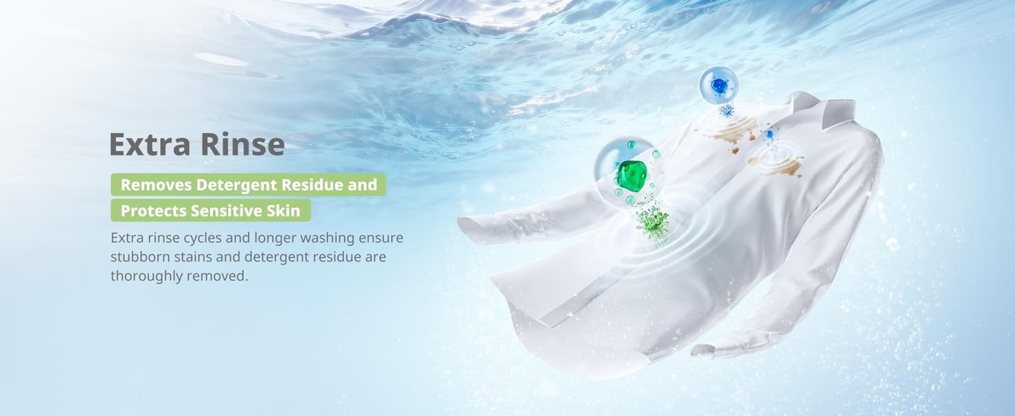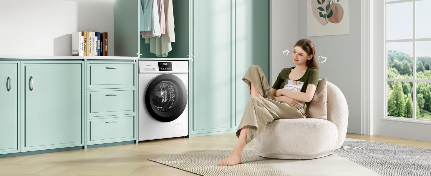 【Large 10KG Capacity】Spacious 10 kg drum handles large loads, while smart sensors adjust water and energy use for an efficient, perfect wash every time