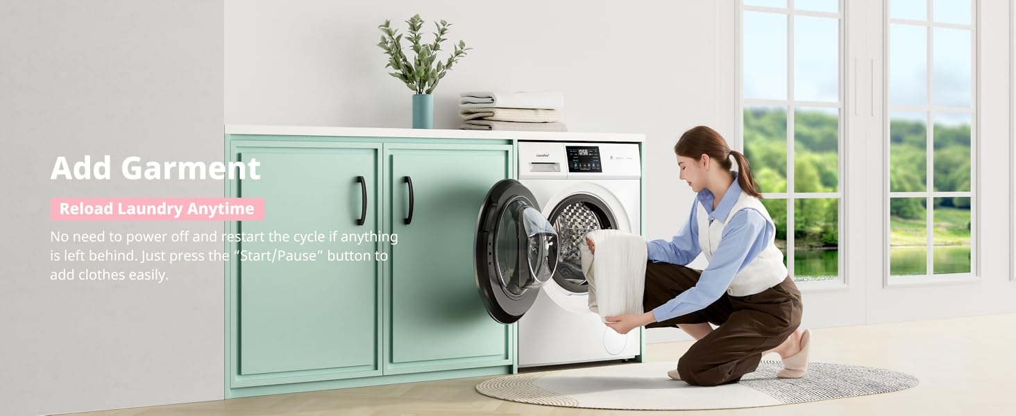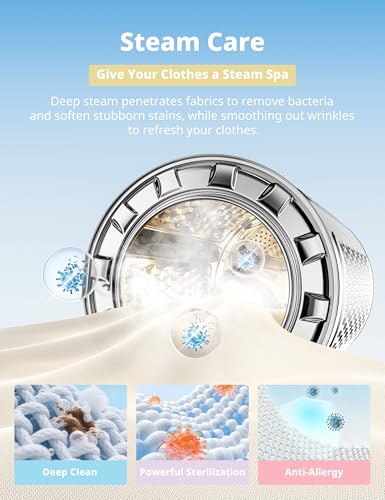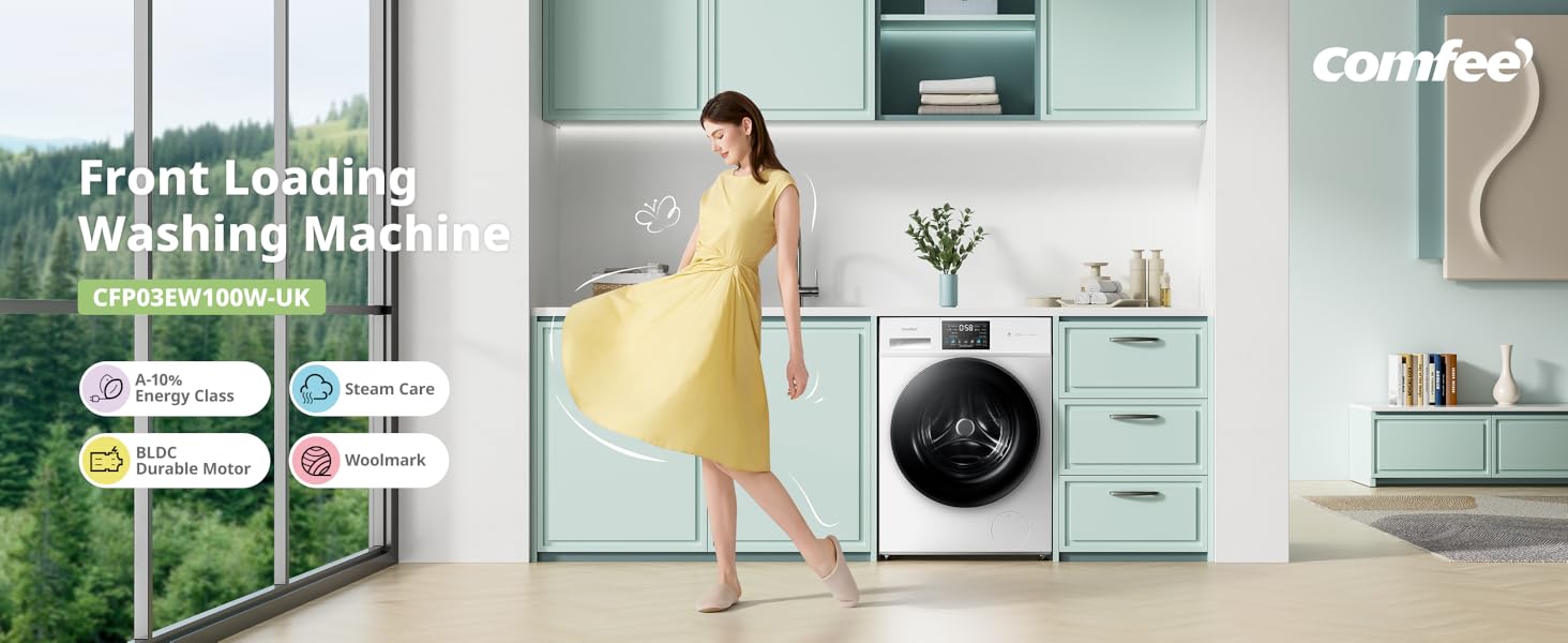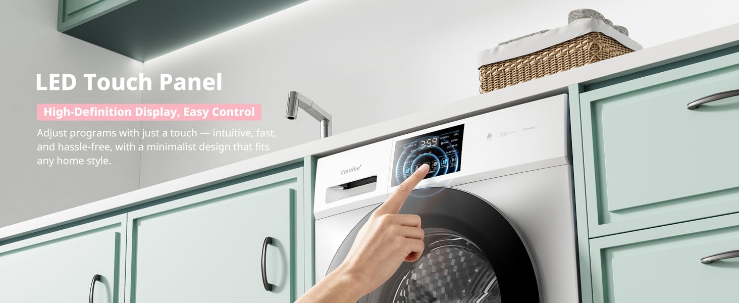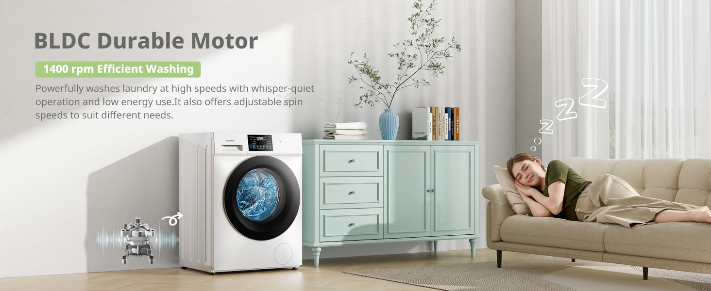 【Large 10KG Capacity】Spacious 10 kg drum handles large loads, while smart sensors adjust water and energy use for an efficient, perfect wash every time