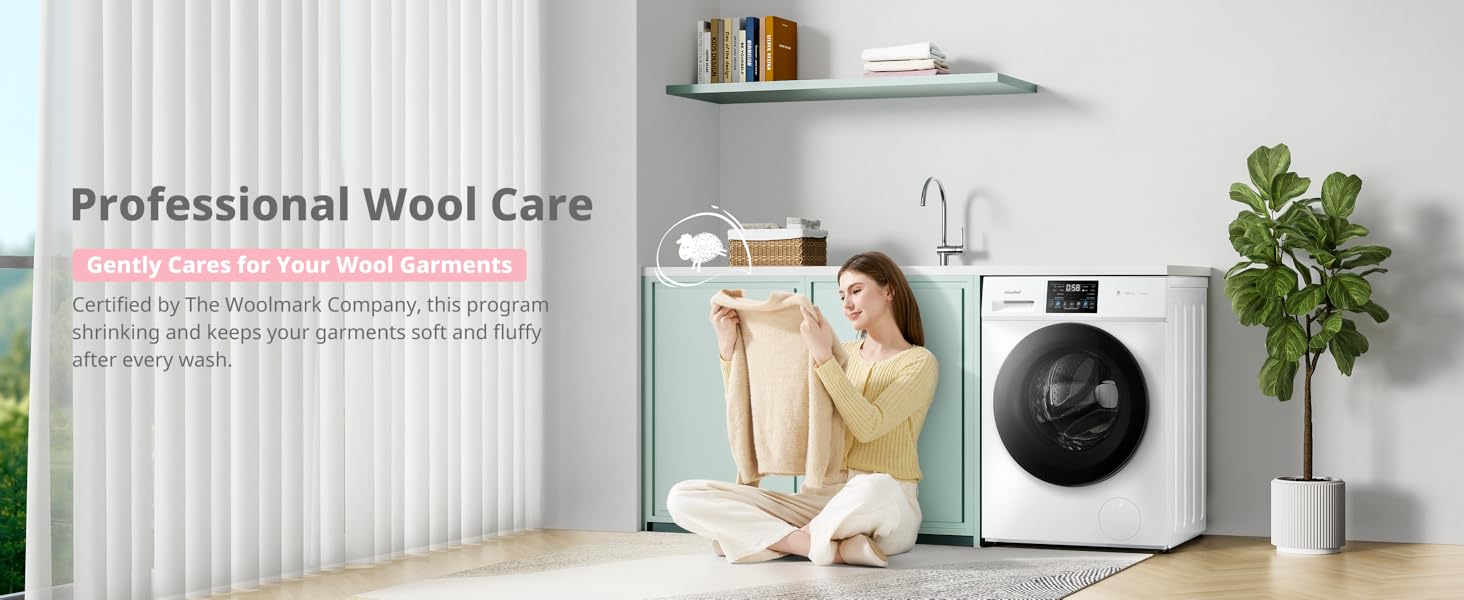【Wool Care】Certified by The Woolmark Company, the Wool program gently preserves softness and shape, keeping your knitwear looking new longer