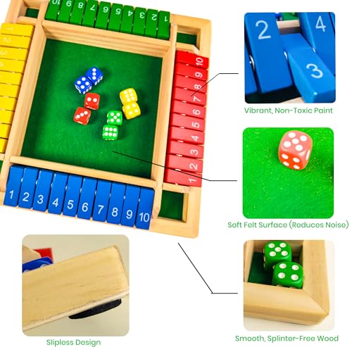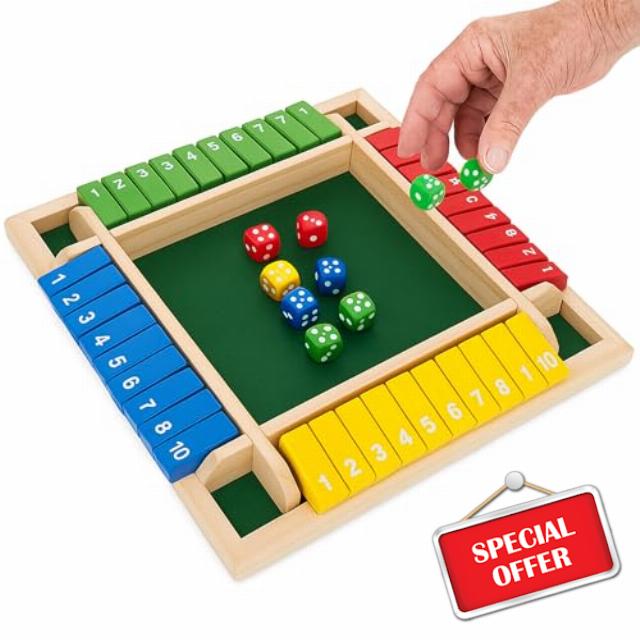 ComfiCare Engaging Wooden Games for Dementia Seniors – 4-Player Shut the Box Board Game for Memory Care & Cognitive Stimulation – Large Number Tiles, Fun Alzheimer's Activity for Adults & Family