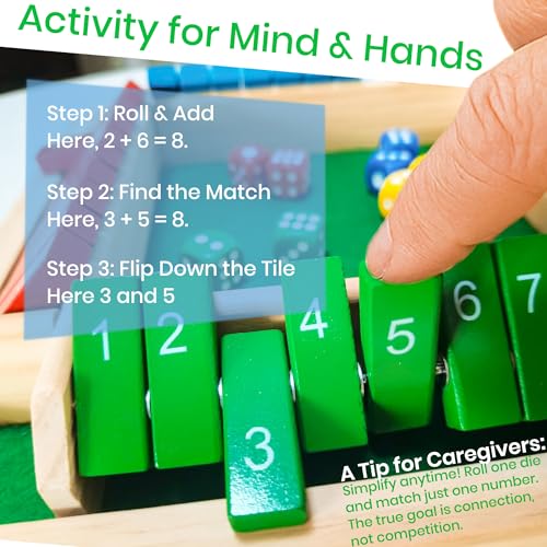 ENHANCE FINE MOTOR SKILLS & DEXTERITY: Support physical independence through play. The simple act of rolling dice and flipping the smooth, easy-to-handle wooden tiles provides excellent tactile feedback and practice for hand-eye coordination, helping to maintain dexterity for daily activities.