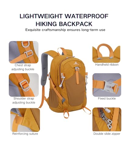Compact Hiking Backpack 20L, Light Travel Backpack, Nylon Waterproof Daily Bag, Comfortable/Breathable/Durable/Multifunctional/Portable/Outdoor Sports Bag for men and women,Yellow