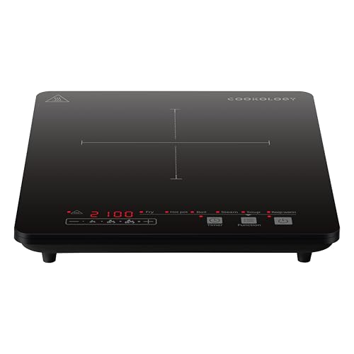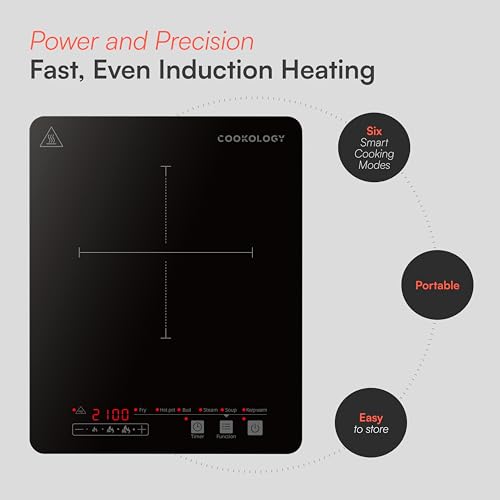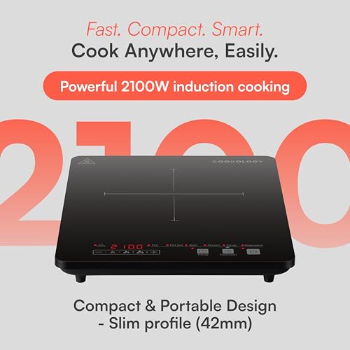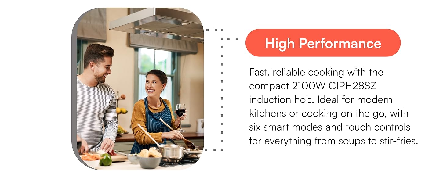 Cookology CIPH28SZ Portable Induction Hob – 2100W Single Zone – 6 Smart Cooking Modes – Touch Control & Adjustable Power 120–2100W – Auto Shut-Off & Smart Pan Detection – Perfect for Travelling