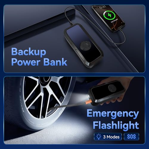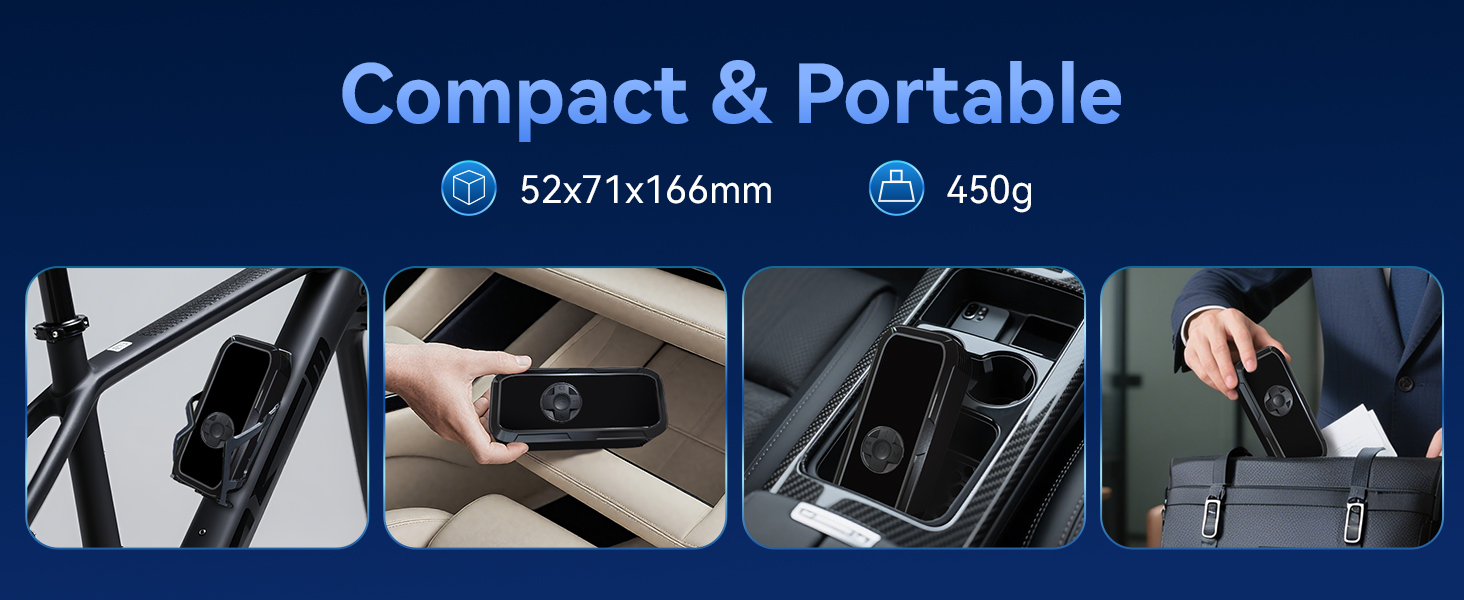 【Compact & Portable】 With dimensions of 191 x 115 x 77mm and weight only 450g, it comes with a storage bag that allows you can store in any limited space, such as a car trunk, bike rack, or your backpack, making it easy to handle emergencies, outdoor activities, and camping
