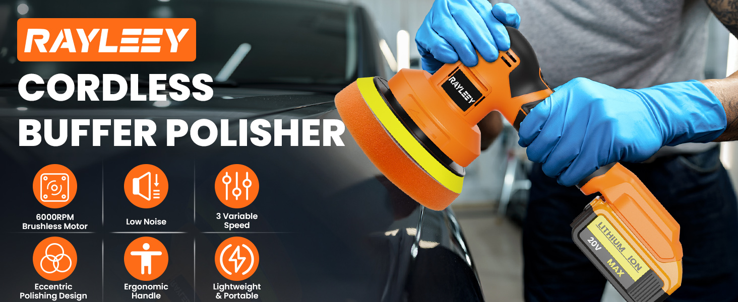 【ERGONOMIC & FEATHER-LIGHT】Engineered for effortless control, the RAYLEEY mini polisher delivers a perfect balance of power and comfort. Weighing just 2.3 lbs, it maneuvers easily and stores conveniently. The ergonomic rubberized grip provides maximum comfort and precise control, reducing fatigue during extended use. Ideal for beginners, DIY enthusiasts, and auto detailing professionals alike.