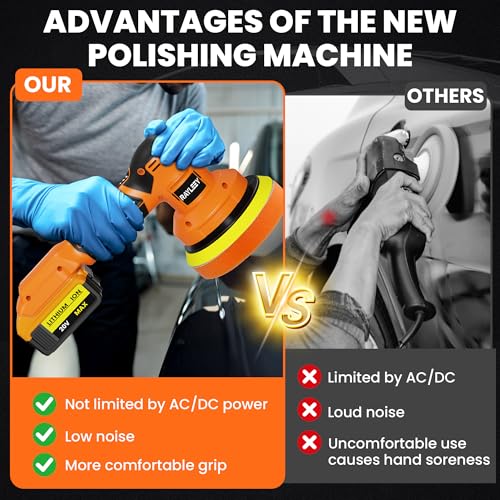【3-SPEED PROFESSIONAL CONTROL】Experience unmatched versatility with our cordless car polisher, featuring 3 variable speeds from 550 to 6000 RPM. Precisely match the task: gentle 550 RPM for delicate wax application, mid-range speeds for perfect polishing, and powerful 6000 RPM for aggressively removing stubborn paint defects and oxidation. This cordless buffer delivers professional-grade results on any surface, from light maintenance to heavy corrective work—all without the hassle of a cord.