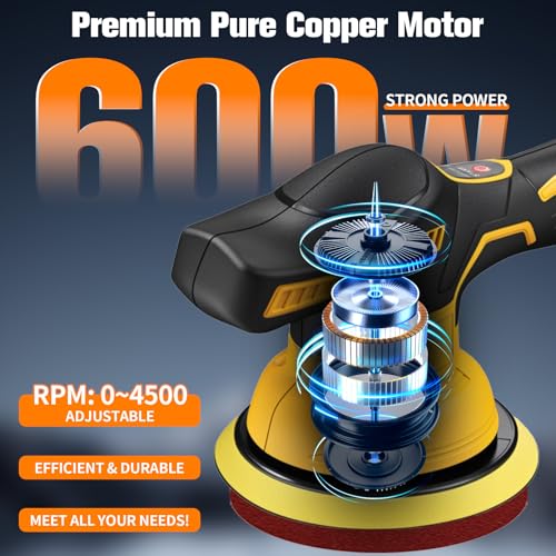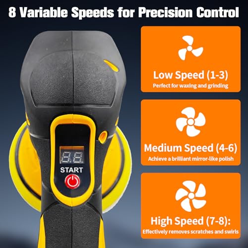 [ 8 Speed Settings ] — This for Dewalt Cordless Polisher for Car offers 8 adjustable speed settings ranging from 0 to 4500 RPM. Whether you need gentle waxing or thorough polishing, this mini polisher adapts perfectly to your needs. Usage tips: 1-3 for waxing/buffing, 4-6 for cleaning/polishing, and 7-8 for scratch removal