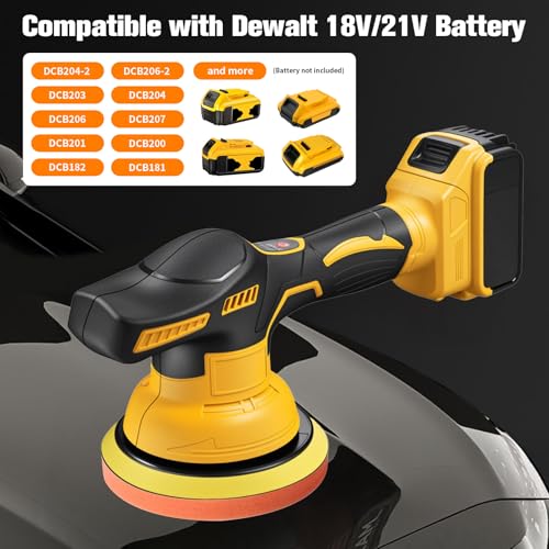 [ Compatible Batteries ] — This Car Buffer Polisher Machine is compatible with Dewalt 18/21V battery models, including DCB204-2, DCB206-2, DCB203, and others (batteries not included). Enjoy maximum flexibility and comfort while polishing without restrictions