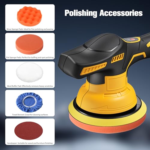 Cordless Car Buffer Polisher Compatible with Dewalt 20V Battery – 150mm Buffer Polishing Kit with 8 Variable Speed (0-4500RPM), Orbital Polisher for Car Detailing/Waxing/Polishing/Scratch Removal