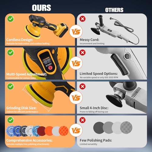 The included polishing pads are perfect for gentle waxing, thorough polishing, and scratch removal. Its lightweight and ergonomic design ensures comfort during extended use, allowing you to achieve a brilliant shine on various surfaces.
