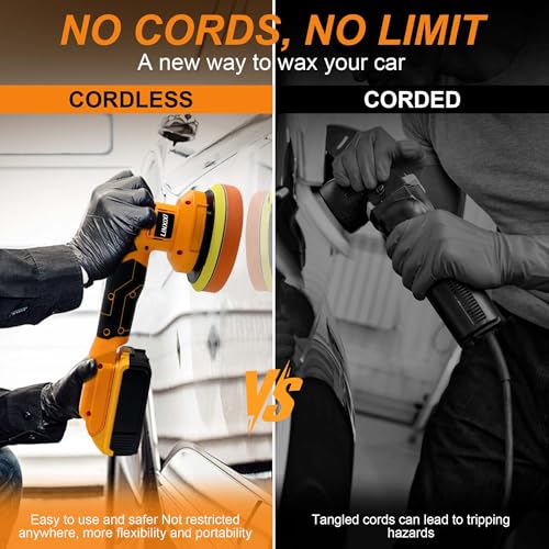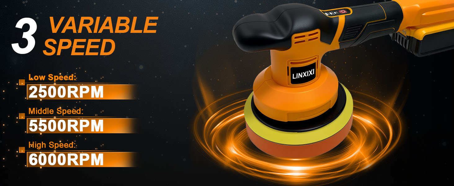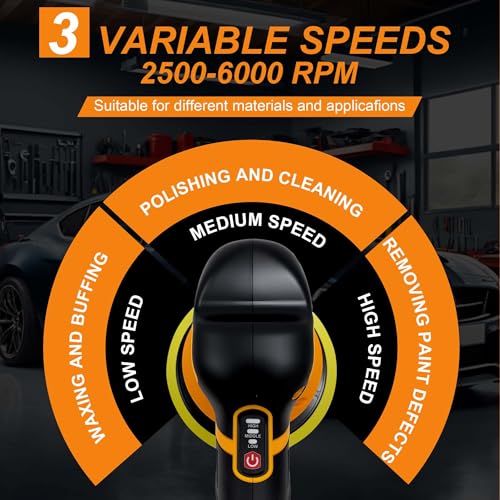 VARIABLE SPEED CONTROL: Cordless buffer polisher features 3 adjustable speed settings up to 6000 RPM for precise control and optimal results across different polishing applications