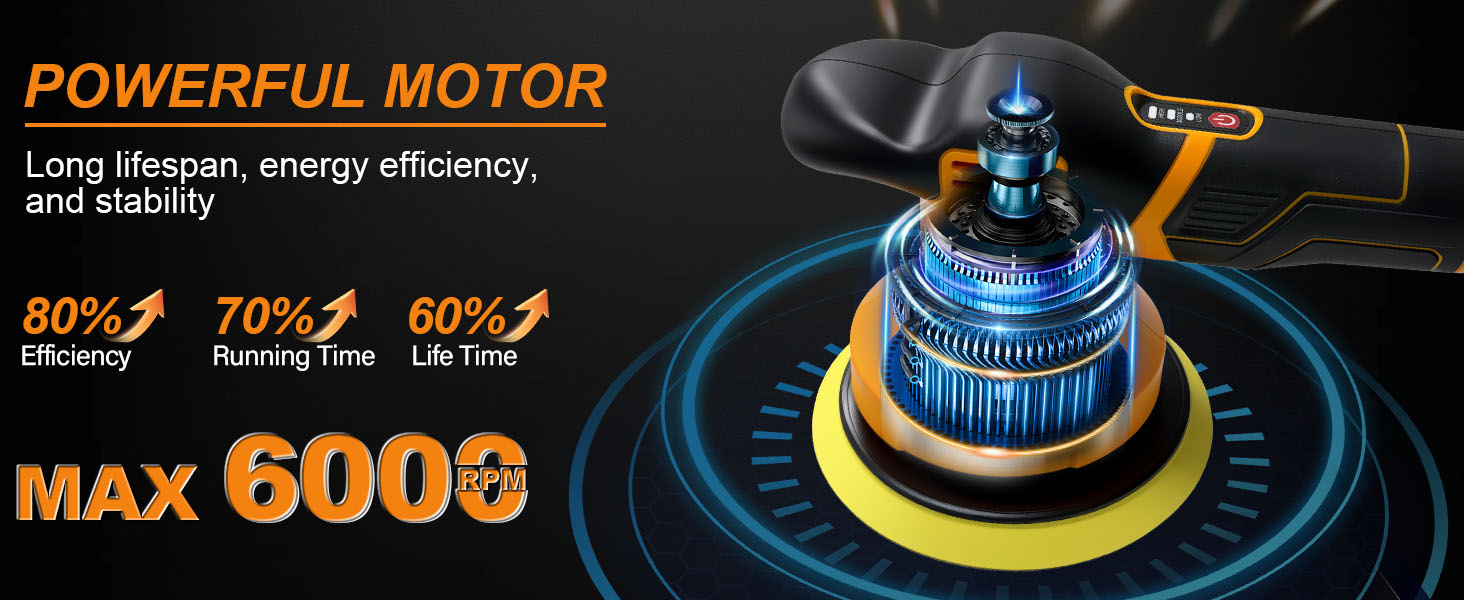 SAFETY MECHANISM: Overload protection design with cordless car polisher that automatically shuts off power when overloaded or overheated, ensuring your safety.