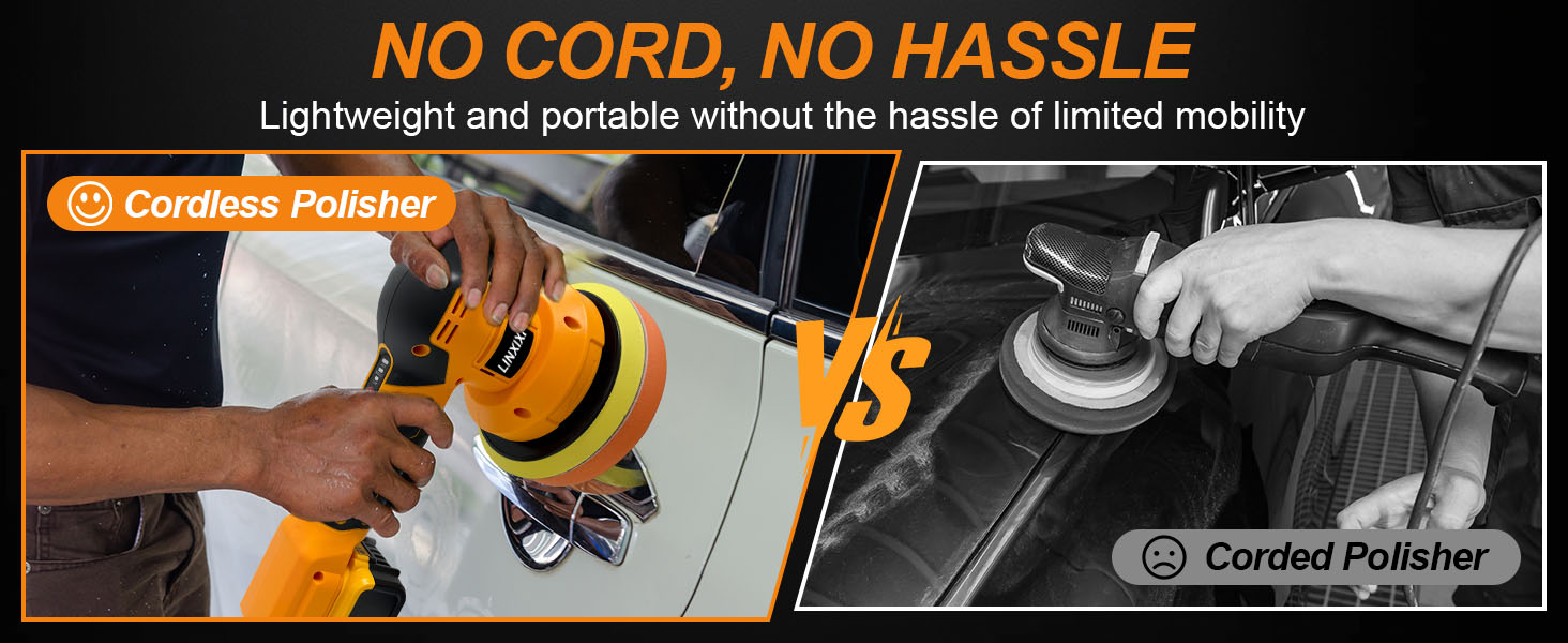 ERGONOMIC DESIGN: The cordless polisher is lightweight and portable, making it easy to manoeuvre around vehicle contours and difficult-to-reach areas