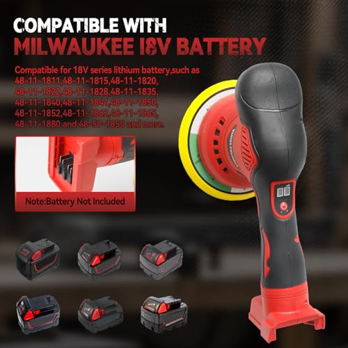 COMPATIBLE BATTERY: This buffer polisher is compatible with Milwaukee 18V Li-ion & Ni-CD Battery, such as 48-11-1820 48-11-1850 48-11-1860 48-11-1862 and more.(Battery not included).