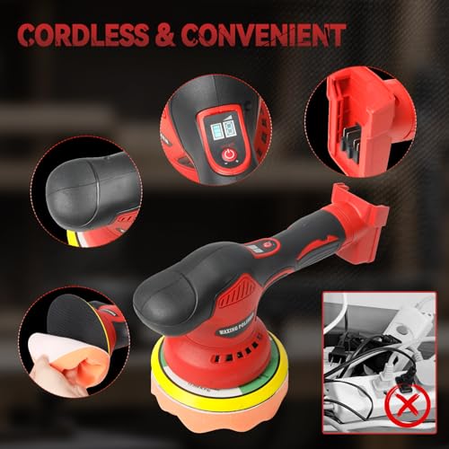 Brushless Motor: Cordless buffer polisher machine is equipped with a high-performance brushless motor that delivers consistent power and precision for flawless results. Say goodbye to uneven surfaces and get a professional-quality polish every time