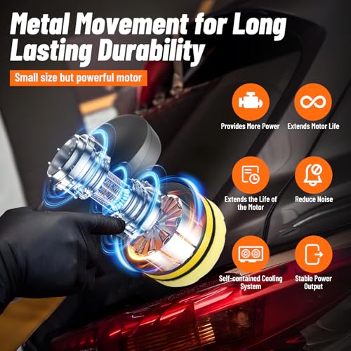 - Car accessories enthusiasts will love this cordless sander and car polisher with 6 adjustable speeds up to 8000rpm for wireless freedom and precise control. The heat-resistant copper wire motor delivers powerful performance while the durable metal gears ensure long-lasting use. Perfect for car detailing kits or scratch remover applications, its lightweight design (only 2.2lbs) with ergonomic grip makes polishing cars or sanding wood effortless. The comprehensive kit includes multiple polishing pads for versatile applications from automotive to furniture projects.