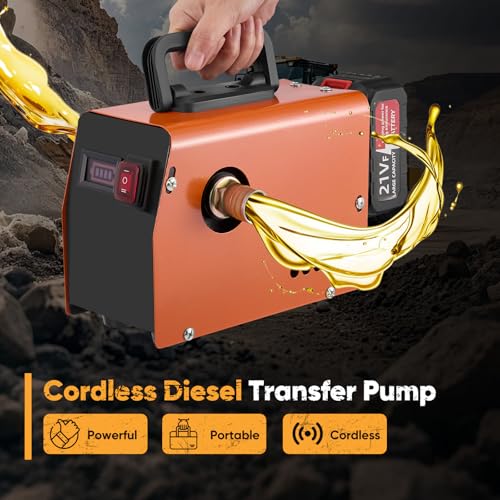 Cordless Electric Diesel Transfer Pump with Powerful 850W Brushless Motor, 50L/min 5500 RPM, Portable Self Priming Fuel Transfer Pump, 2 x 21V 2.0Ah Battery & Fast Charger, for Diesel, Kerosene