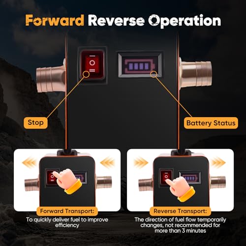 Durable and User-Friendly: The diesel pump is made of high-quality materials, with a sturdy metal casing that ensures durability and excellent wear resistance. Equipped with a convenient handle and non-slip base, it is easy to carry and install. The large cooling vents ensure stable long-term operation. Additionally, it features an on/off button and a forward/reverse button, but note that reverse operation is not recommended for more than 3 minutes.