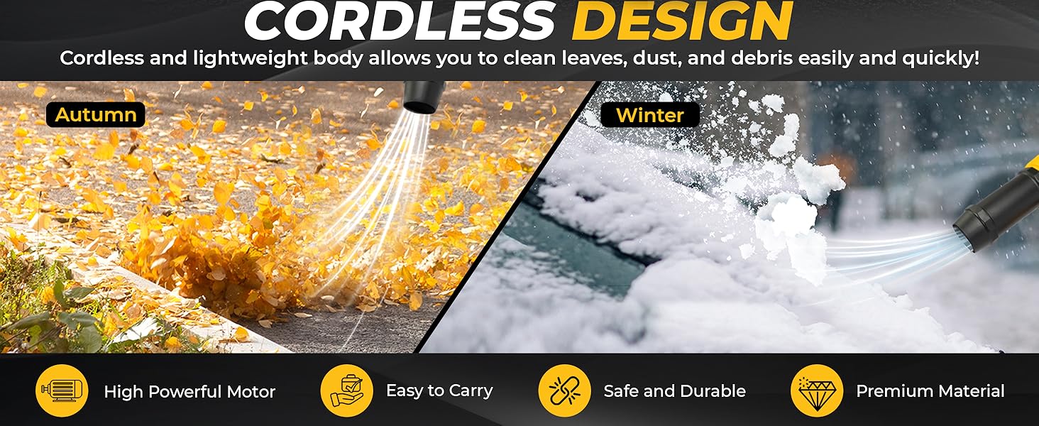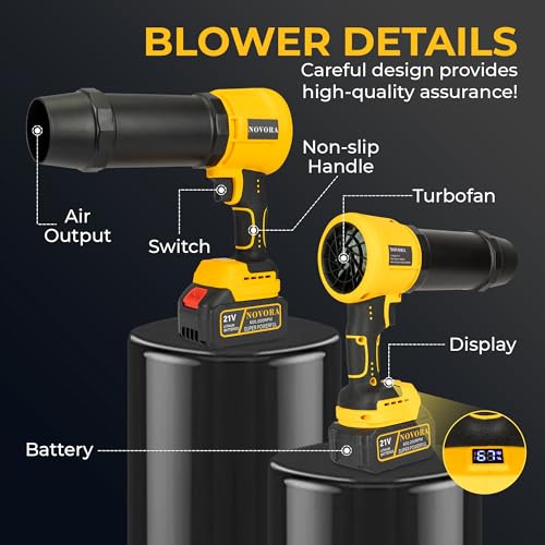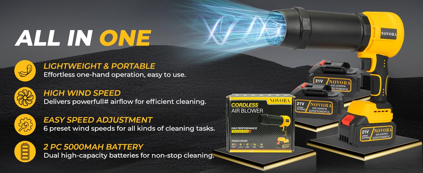 Lightweight & Cordless Design: Weighing only 2.2lbs, the NOVORA blower is easy to hold and operate with one hand. Clean cars, gardens, patios, garages, or driveways effortlessly without tangled cables.