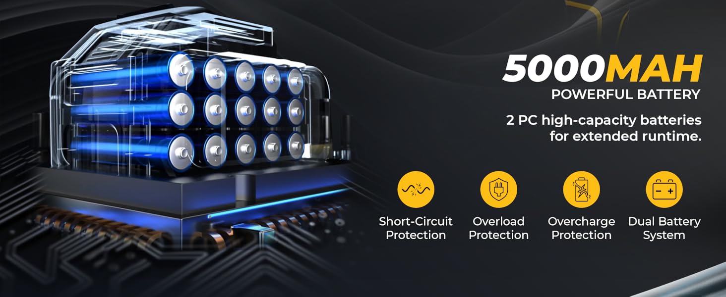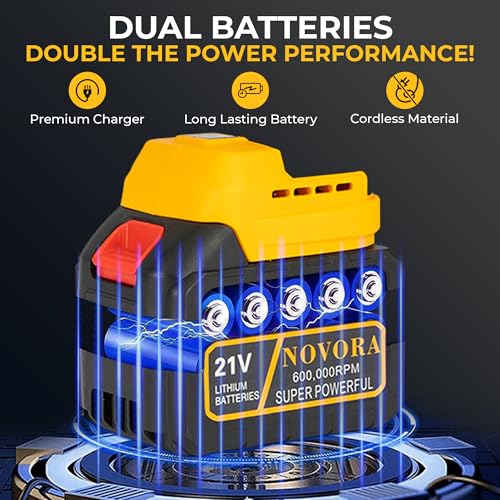 Dual 21V Batteries & Fast Charger: Comes with 2 rechargeable lithium batteries and a fast charger, giving up to 25 minutes of continuous use. Easily swap batteries to keep working without interruptions.