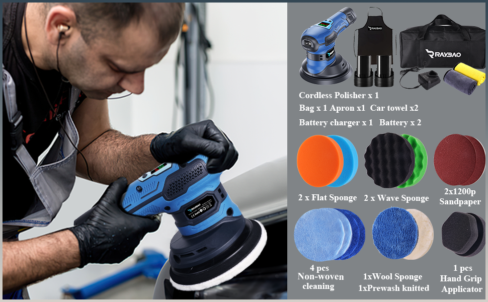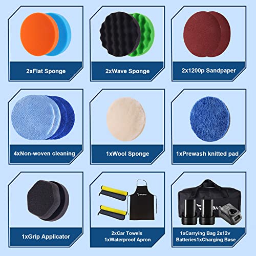 MULTIPLE FUNCTION : In addition to the machine, we also provide 20 different polishing accessories, including polishing sponge pads, absorbent cloths, etc., allowing you to easily complete car cleaning, wax removal, polishing, scratch removal, and other tasks. It can also be used for ships, motorcycles, and furniture polishing.