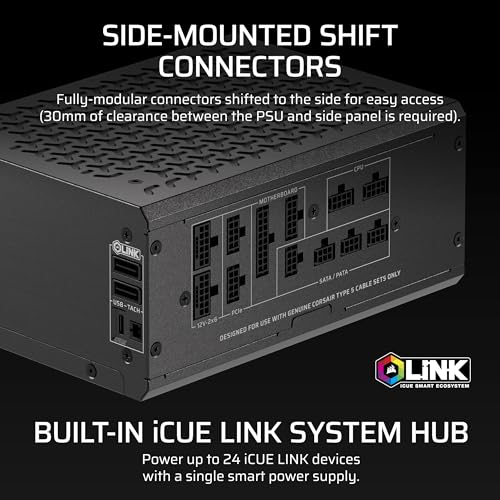Integrated iCUE LINK System Hub – The first power supply with an embedded iCUE LINK System Hub makes it easier than ever before to configure an iCUE LINK cooling system. You can attach iCUE LINK devices directly to the power supply, which can control and synchronize a total of 24 devices