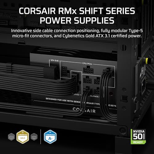 CORSAIR RM850x SHIFT (2025) Fully Modular ATX Power Supply – Modular Side Interface, Native 12V-2×6 Cable, ATX 3.1 & PCIe 5.1, Fan-Speed Control, 105°C-Rated Capacitors, Cybenetics Gold – Black