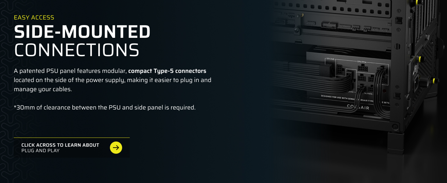 - Innovative Easy-Access Connection Position: Modular connections on the side of the PSU mean easier access for your cables and simpler, cleaner cable management
