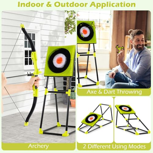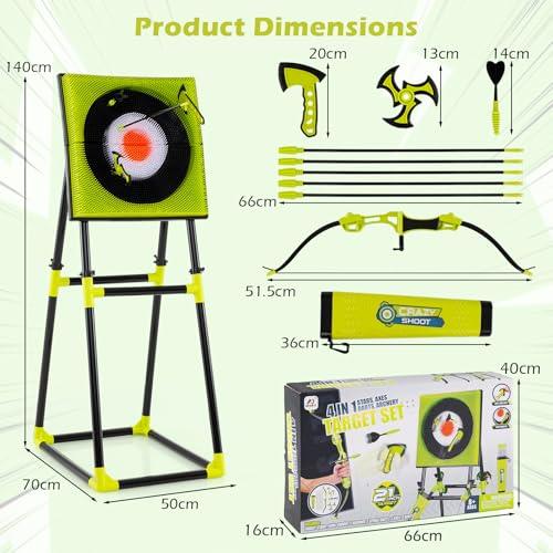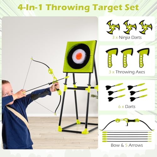 【Easy Assembly & Extra Storage】This kids archery game set is designed for easy assembly, allowing you to set the archery kit up quickly and start playing right away. The target rack features convenient hooks for placing axes, Ninja darts, and darts, ensuring they are not lost after throwing.