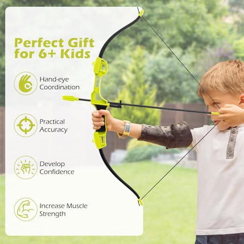 【Perfect Gift for 6+ Kids】This game set helps kids practical accuracy, develop confidence, increase muscle strength and practice their hand-eye coordination. Whether a birthday, Christmas, or any other important holiday, this bow and arrow set is a wonderful gift for children aged 6.
