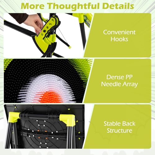 【Sturdy & Stable Frame】The target stand is made of a high-quality PVC frame and dense PP needle array, ensuring durability and stability. Besides, the stable back structure and wide base provide a reliable support for the target, ensuring a smooth and enjoyable throwing experience every time.