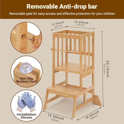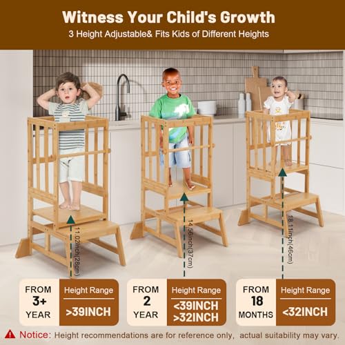 【HEIGHT ADJUSTABLE】Three adjustable platform levels allow children from 18 months to 3 years (25–40 inches tall) to reach kitchen counters, islands or sinks comfortably. The design grows with your child, offering long-term value for everyday family life.