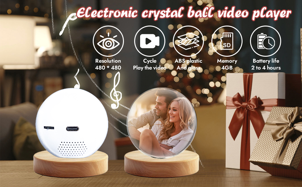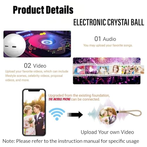 - 【Simple Setup, Convenient Operation】The Wi-Fi version allows you to directly transfer videos to the product simply by downloading the mobile app. Currently, it only supports two formats: MP4 video and JPG image. Easily switch between videos and photos, adjust volume with one click, and give you complete control over the video crystal ball. Package includes: 1*Video Crystal Ball; 1*Packaging Box; 1*USB Data Cable; 1*Instrument Box.