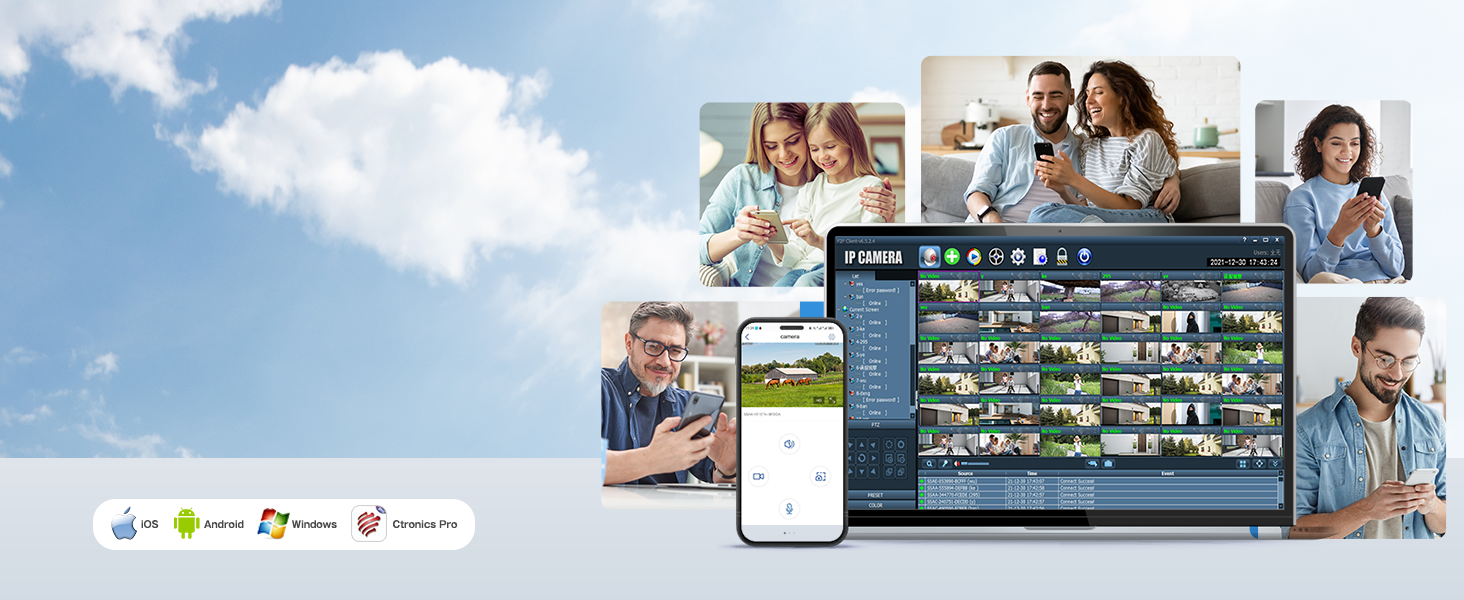 Work with the “Ctronics Pro” app on iOS/Android/ and “HiP2P” on Windows/Mac OS systems.