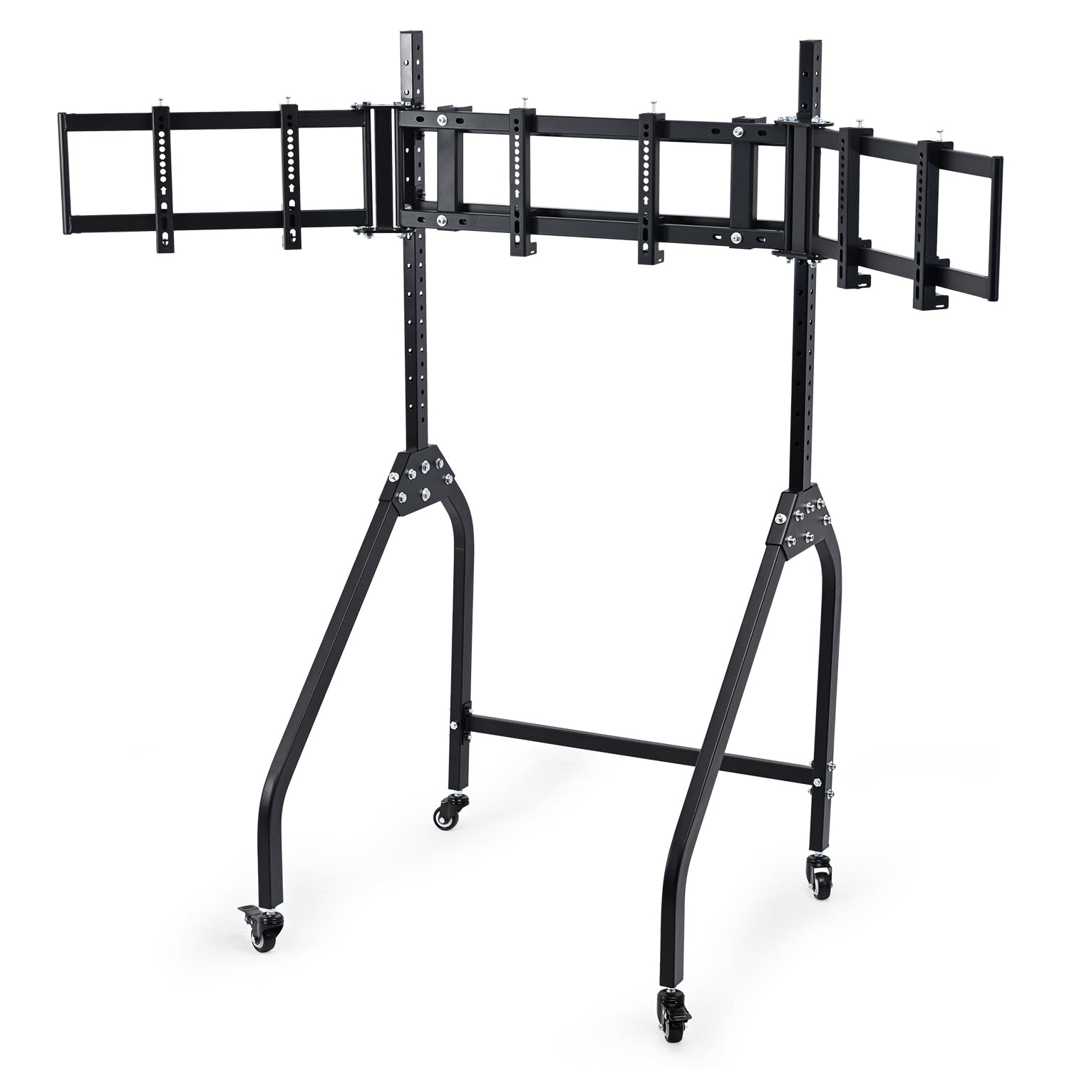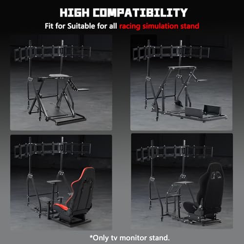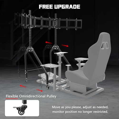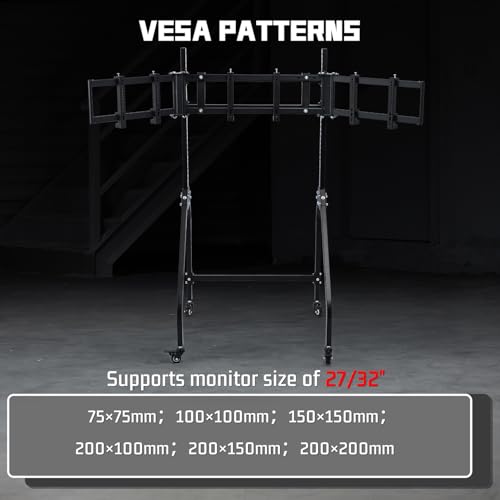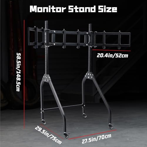 Dardoo Triple Monitor Stand with Brake Casters –Premium Adjustable Mount for Racing Simulator Cockpit, Ergonomic Height/Tilt Adjustment for 27 to 32 inch Monitors, Gaming Workstation Setup