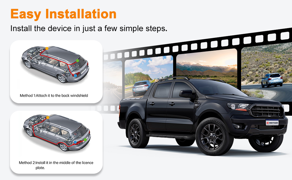 - ✐ Compact & Easy Installation: Compact size, ensuring it doesn't obstruct your vision while driving. Installation process of dash cam front and rear is simple, truly realizing plug-and-play.You only need to firmly fix dash cam's bracket on the windshield and easily adjust it to a suitable angle,then you can start a stable and reliable journey of recording.