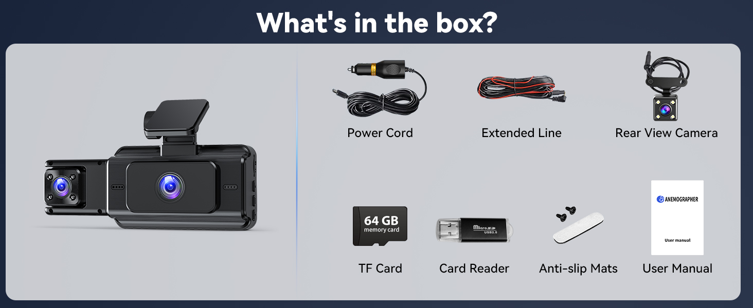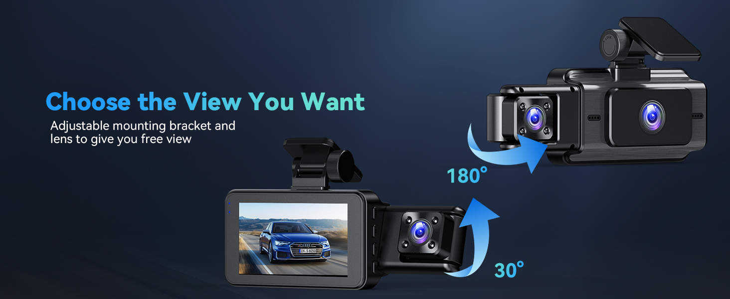 - Compact Design, Voice Prompts & Easy Installation ➤ The discreet 3" dash cam is easy to mount with a detachable and adjustable front cam (120°) and a 360° rotatable rear camera. Voice prompts notify you of recording status and emergency locks, offering full control and convenience.