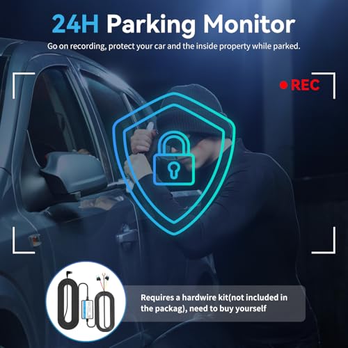 - 24H Parking Mode & Time Lapse Function ➤ Keep your car monitored even while parked. With Time Lapse mode, the dash cam records continuously at low frame rates to save power. Hardwire kit required for full 24H monitoring (not included, need to buy yourself).