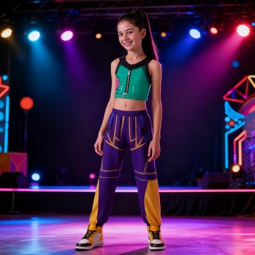 Demon Hunter Zoey Cosplay Costume for Kids, Singer Idol Stage Cosplay Fancy Dress, Girls Halloween Christmas Party Carnival Dress Up Costume