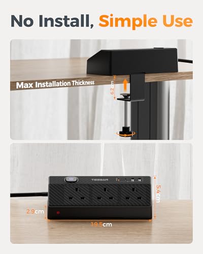 - Desk Clamp on Design: This desk mount USB extension lead securely mounts to desktops, under desks, or table legs (fits max thickness 6.2cm), keeping this plug extension socket stable and providing easy access to charging for your devices