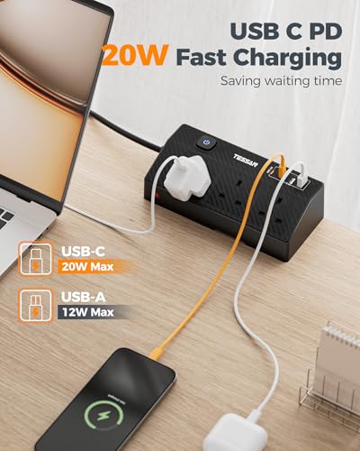 - 20W USB C Fast Charging: The power strips features 2 USB C and 2 USB A; USB C delivers to 20W Max, can quickly charge your phone, reducing waiting time; USB A is 12W max per port, meeting the charging needs of various USB devices