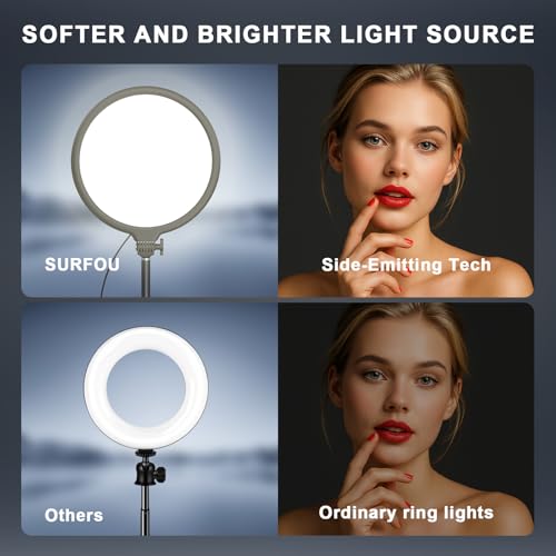 10.2" LED video light panel: with 84 LEDs, the small SURFOU R8 table light ring offers up to 680Lux illumination at 0.5m, colour temperature from 3000K to 6000K and CRI>95, which makes the light more natural.