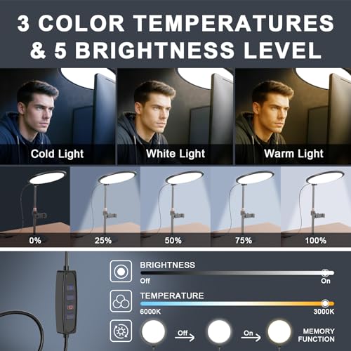 Desk Ring Light with Stand, 10'' Desktop Video Conference Lights for Zoom Meetings, Laptop Monitor, Video Conference Lighting, Video Recording, Makeup, Vlog Live, YouTube