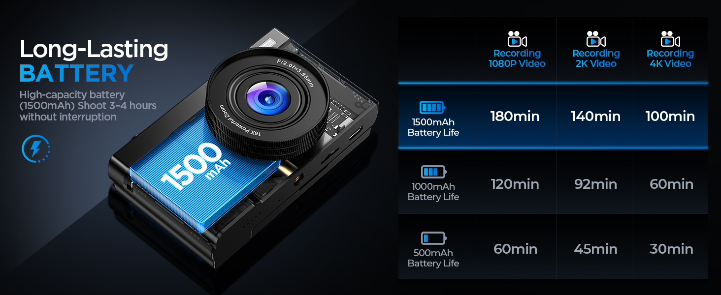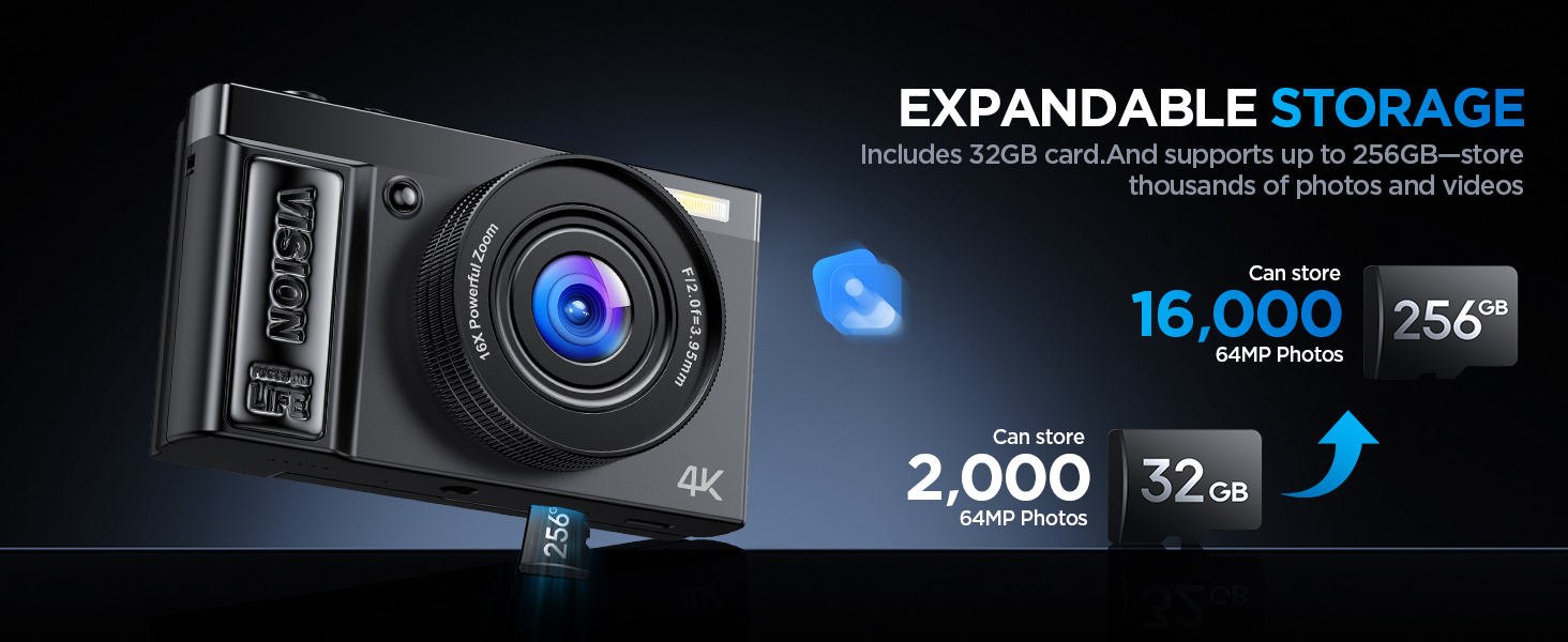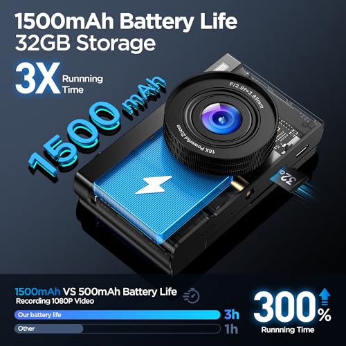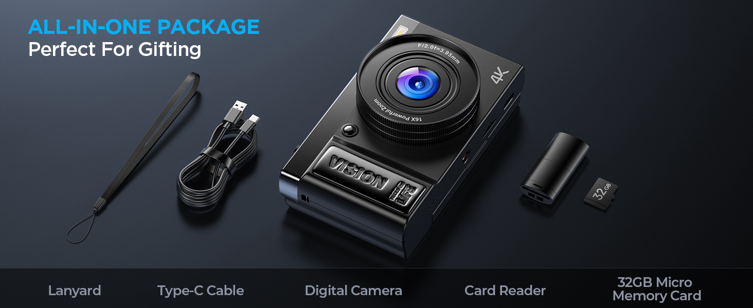Ready to Shoot Out of the Box: Includes a 1500mAh rechargeable battery and a 32GB SD card, so no extra accessories are needed. Perfect for first-time vloggers, home photography, or as a backup digital camera for pros.