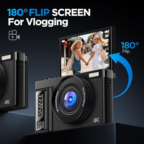 Digital Camera 4K for Photography Vlogging: 64MP Cameras for Video with Autofocus – 16X Zoom Photo Camera Gifts for Teens Ages 8-18 – 180°Flip Screen Compact Cámara – Point and Shoot Digital Cameras