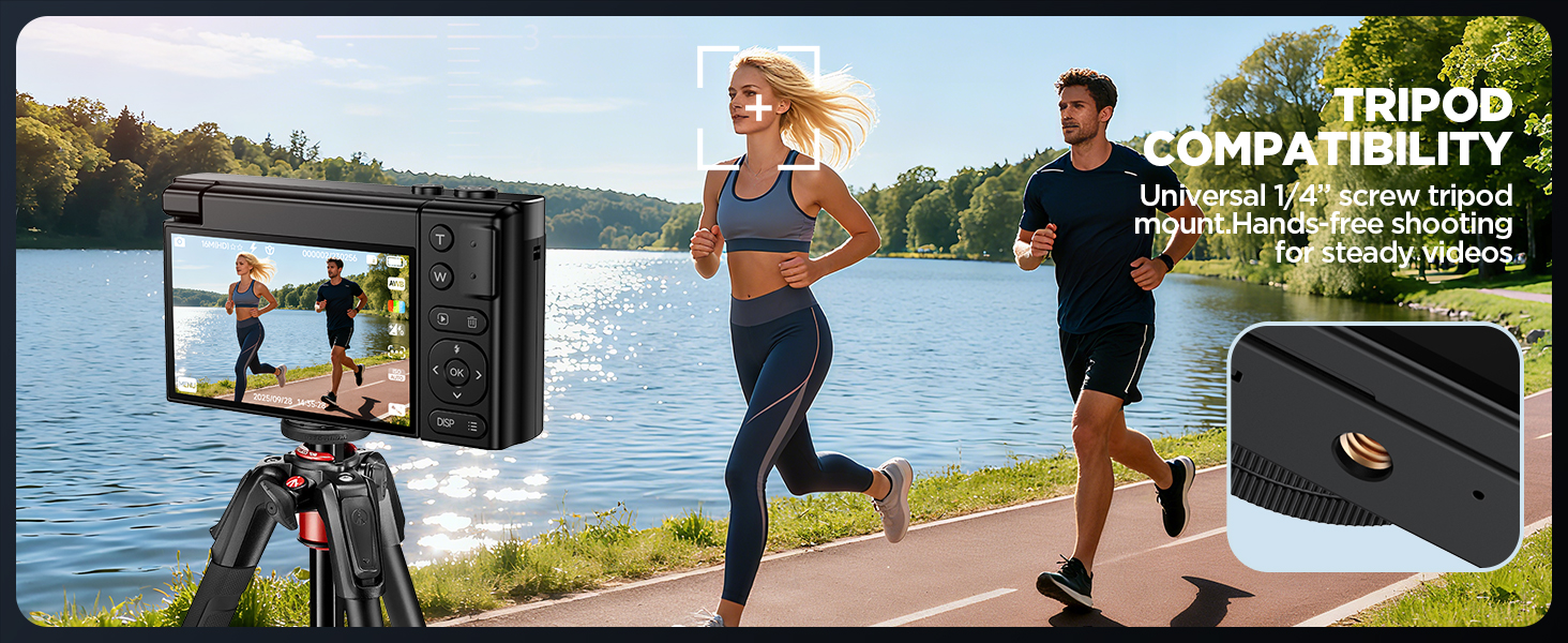 Webcam & Tripod Compatible: Turn this digital camera into a webcam for YouTube, Zoom, or online classes with plug-and-play ease. Standard 1/4-inch mount works with most tripods, making it great for hands-free video, action recording, or indoor and outdoor content creation.