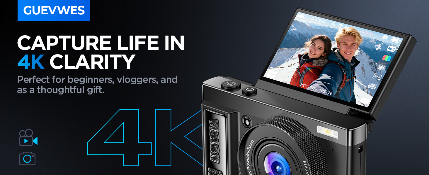 Perfect for Teens & Beginners: A compact digital camera ideal for young photography enthusiasts and beginner vloggers. Capture 4K video, action shots, and stunning photos with a small, portable camcorder that’s perfect for outdoor adventures or home projects.